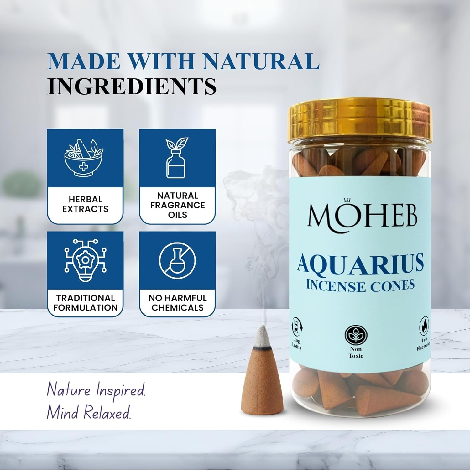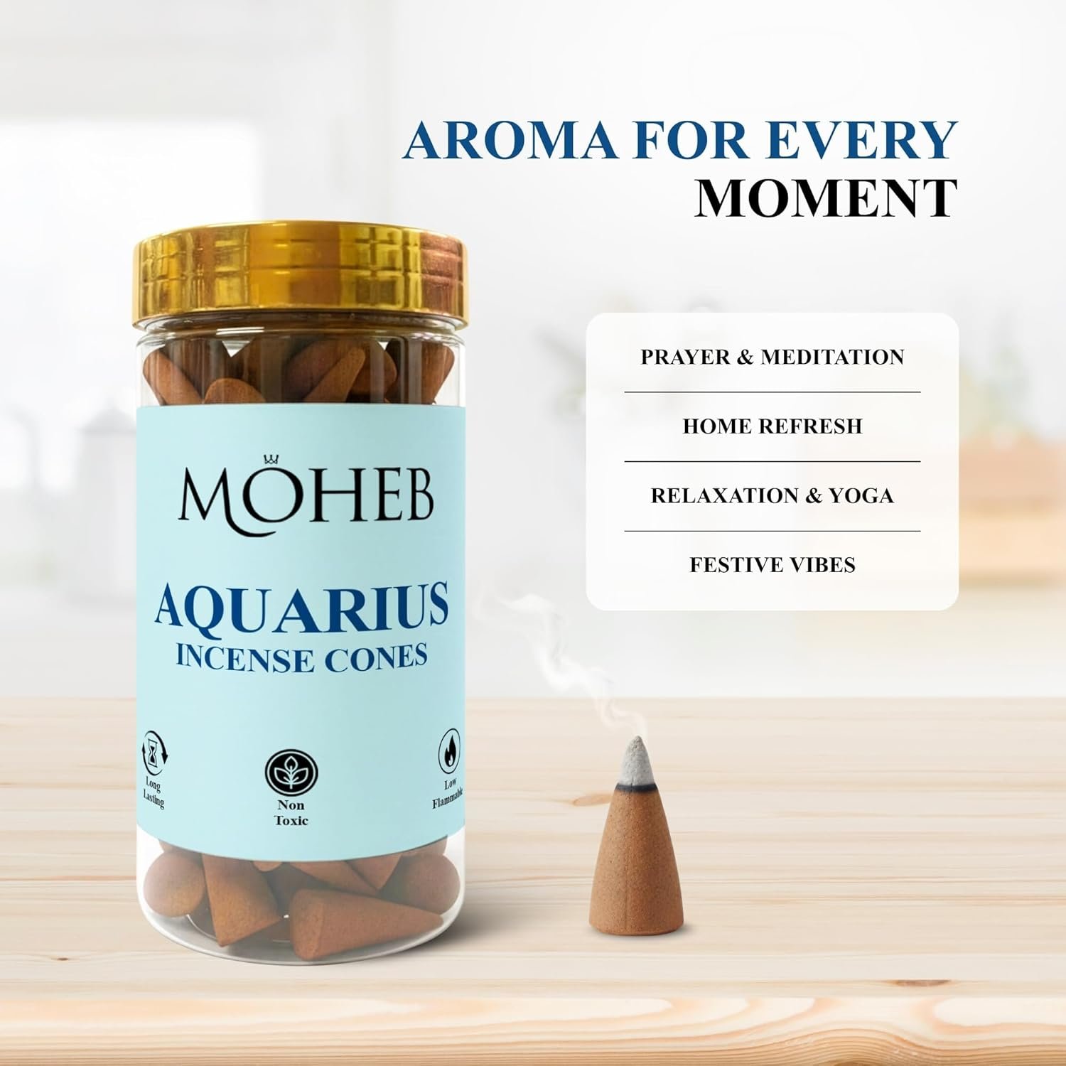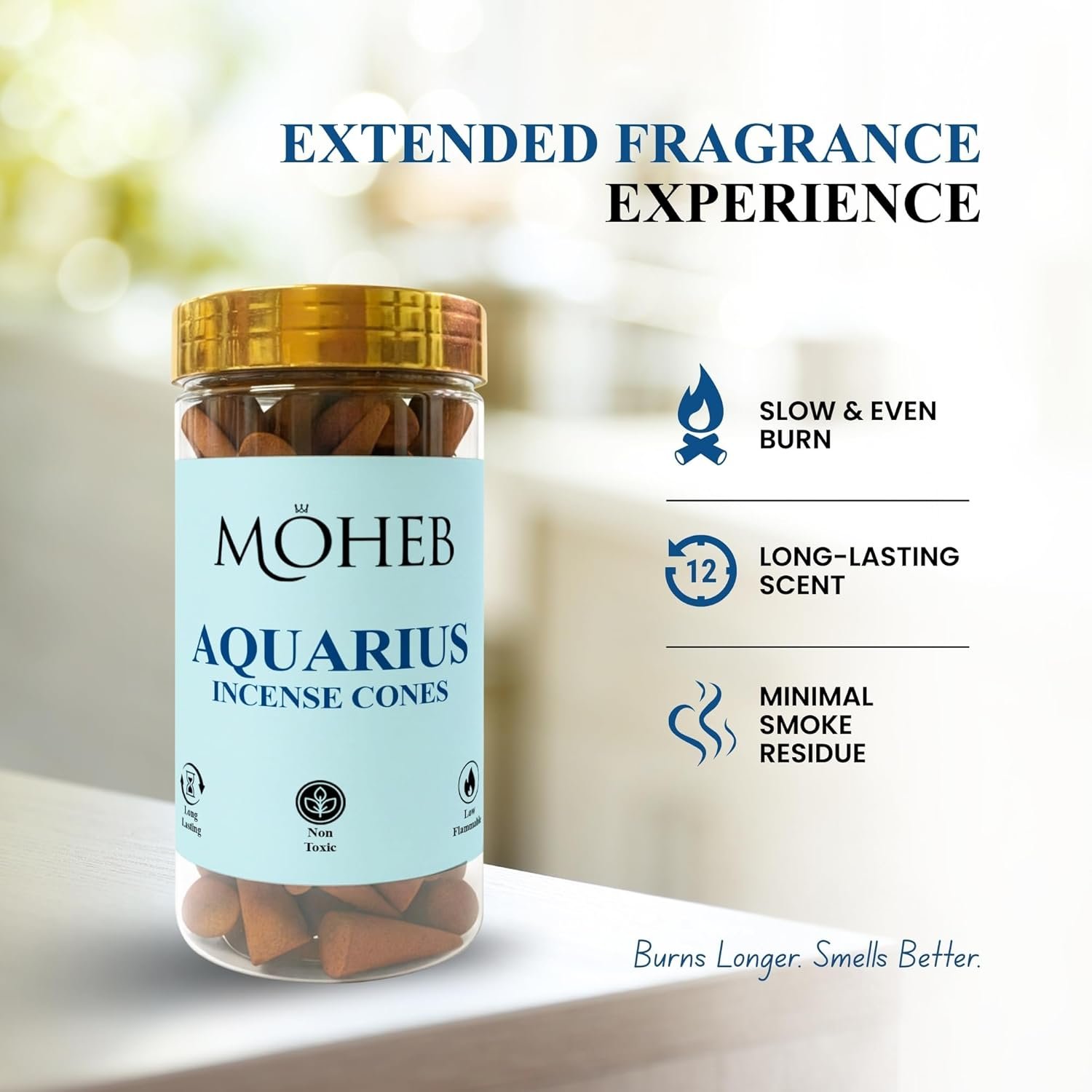 Double the serenity with our Moheb Aquarius 100g Value Pack. Capture the essence of the ocean and the sky with these premium incense cones. Featuring a signature blend of crisp aquatic notes and cool, refreshing air, this larger pack ensures your home stays a sanctuary of calm for twice as long. Perfect for daily meditation, yoga, or simply refreshing your living space.