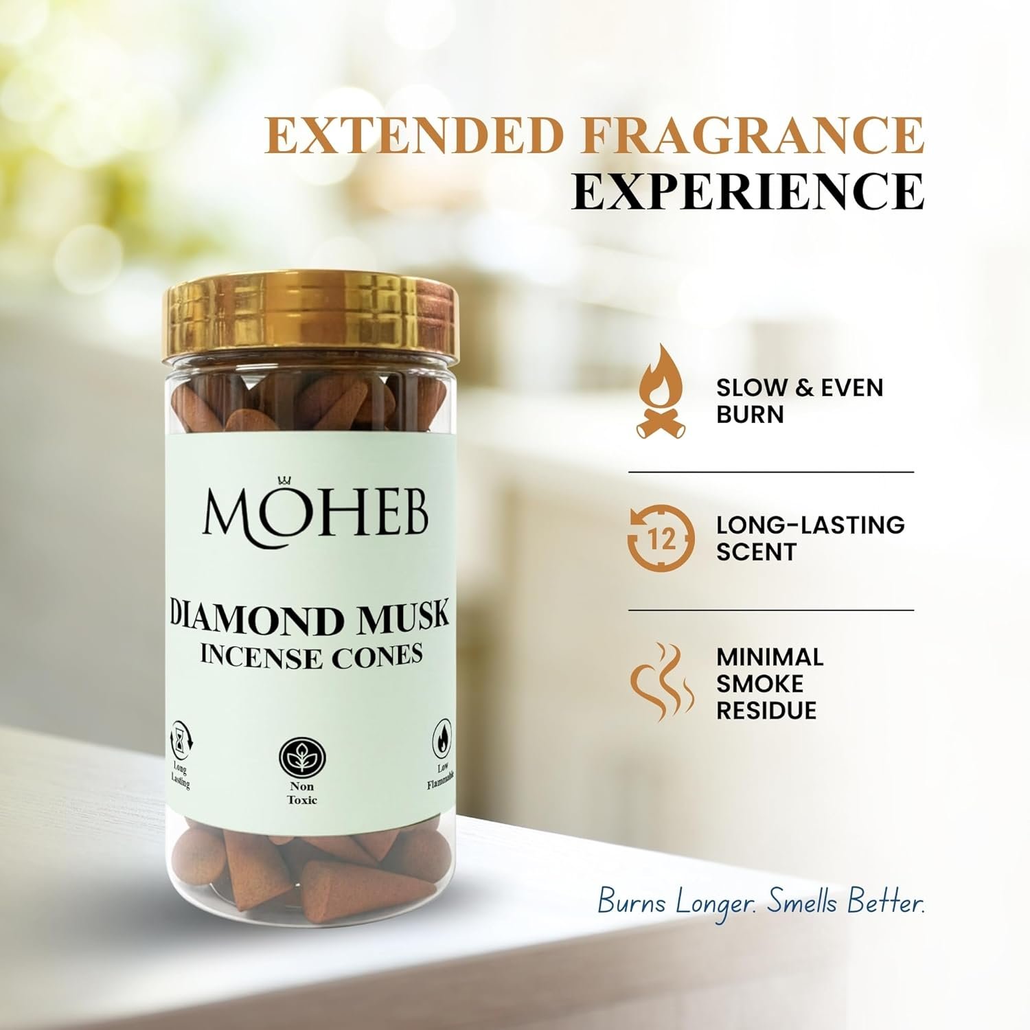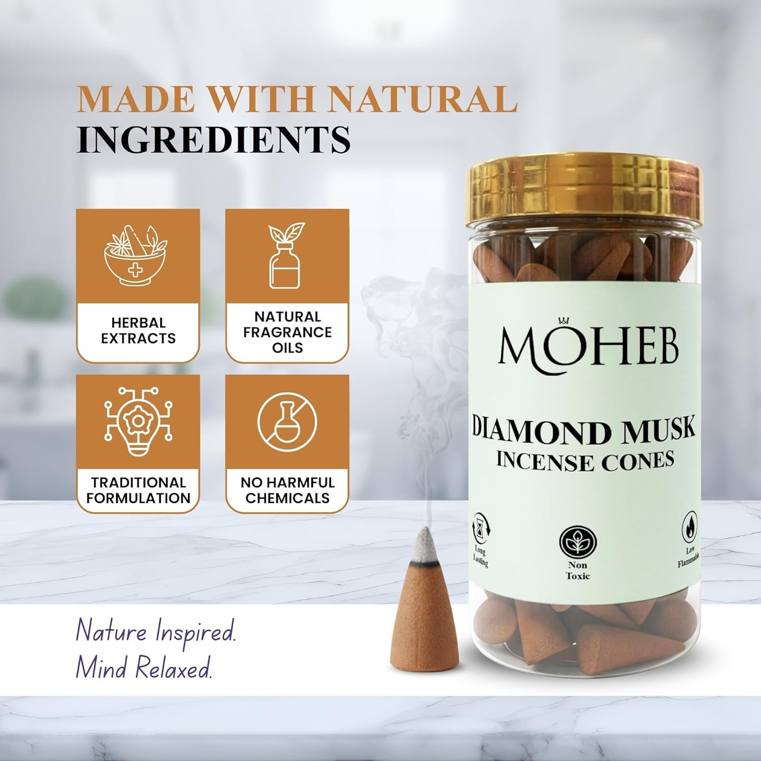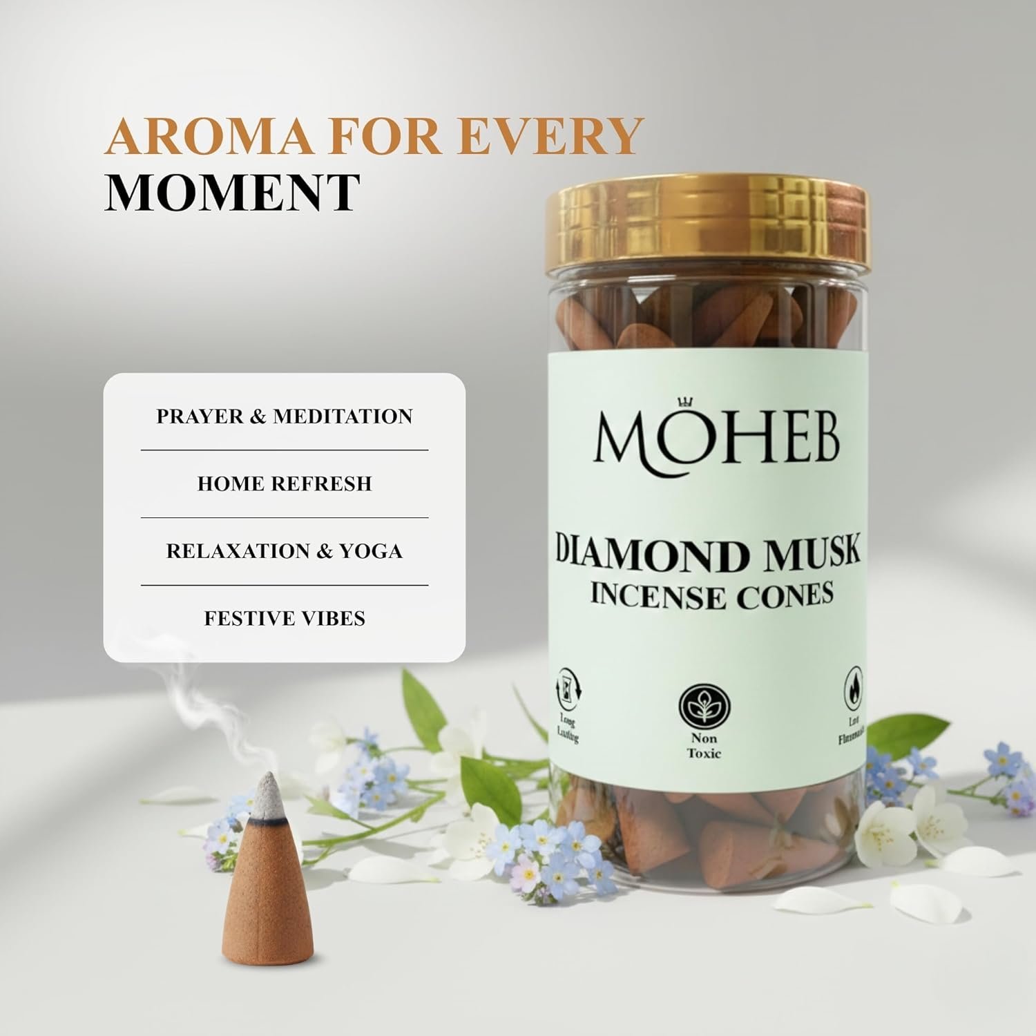 Define your space with the unmistakable signature of Moheb Diamond Musk. Our 100g Incense Cone Pack is the premier choice for the modern home. Moving away from heavy, traditional scents, Diamond Musk provides a “bright” and “expensive” olfactory experience that mimics the crispness of fresh linen and the depth of precious musk oils.