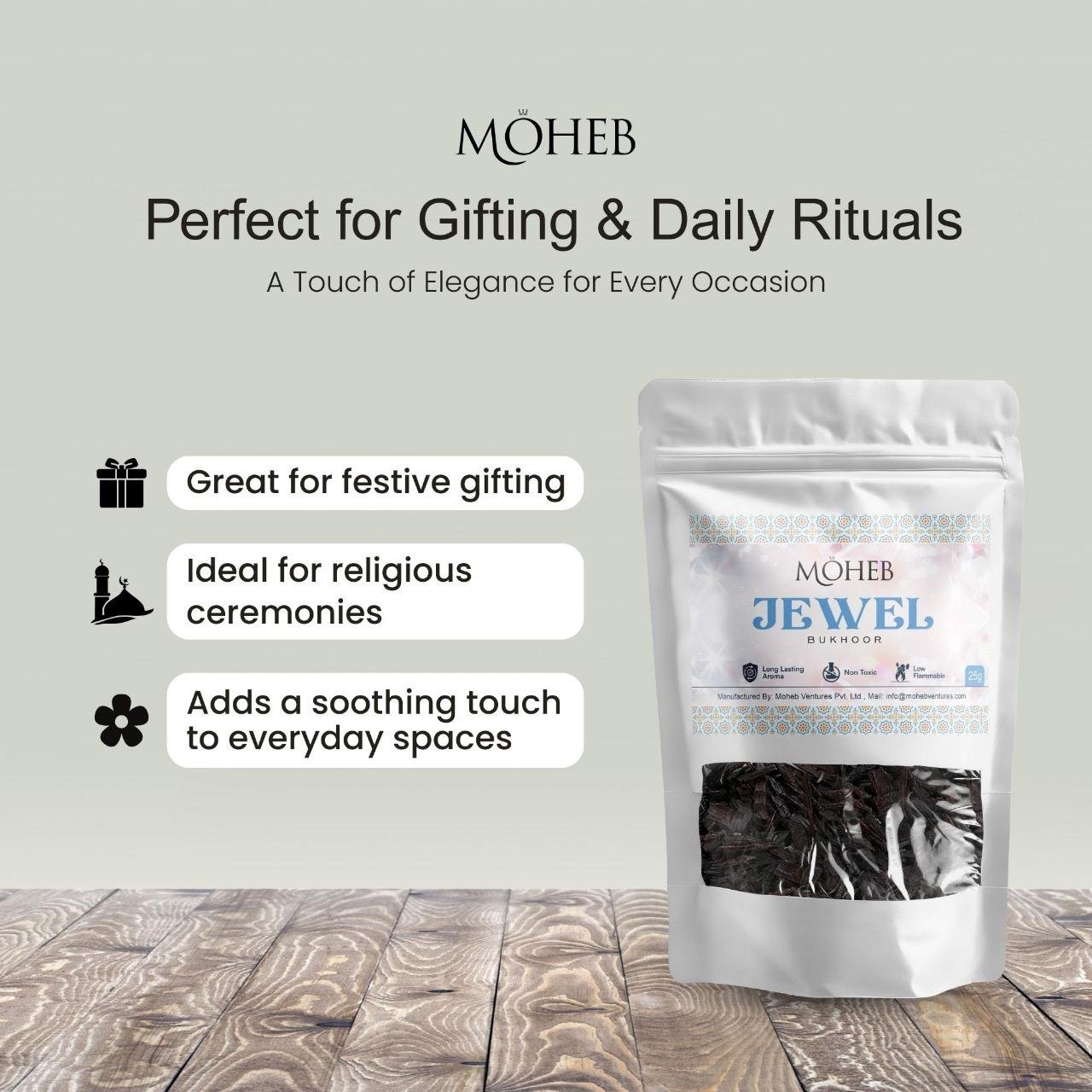 Jewel Powder Bakhoor 25 GM is a luxurious Arabian bukhoor with a rich, elegant fragrance that fills your space with warmth and sophistication. Perfect for daily use, prayer time, and special occasions. Suitable for charcoal and electric burners.