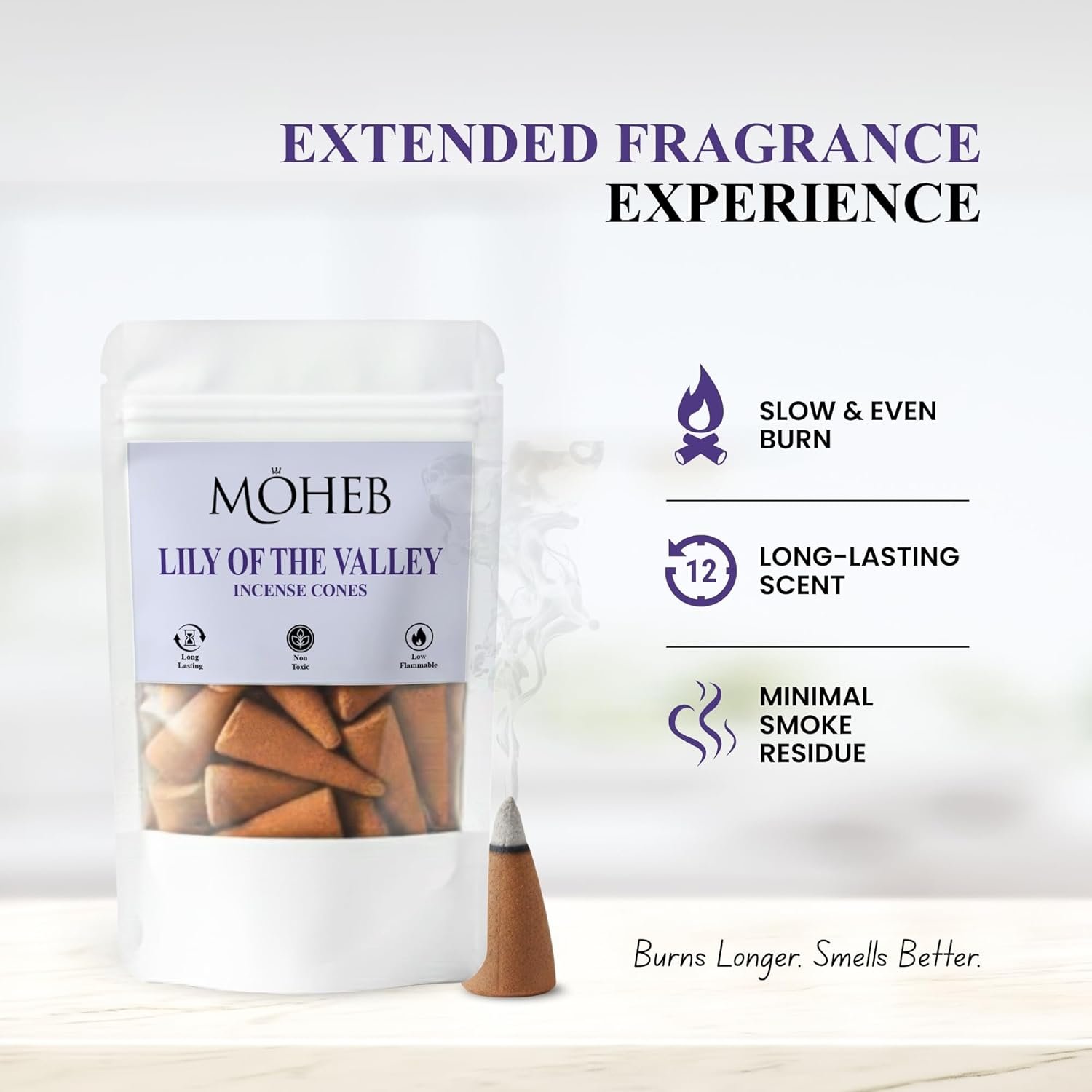Step into a garden of tranquility with Moheb Lily of the Valley. Our 50g Lily of the Valley Incense Cones are a tribute to one of nature’s most beloved and elegant flowers. Often associated with luck and happiness, this fragrance delivers a crisp yet gentle floral aroma that instantly lightens the mood of any room.
