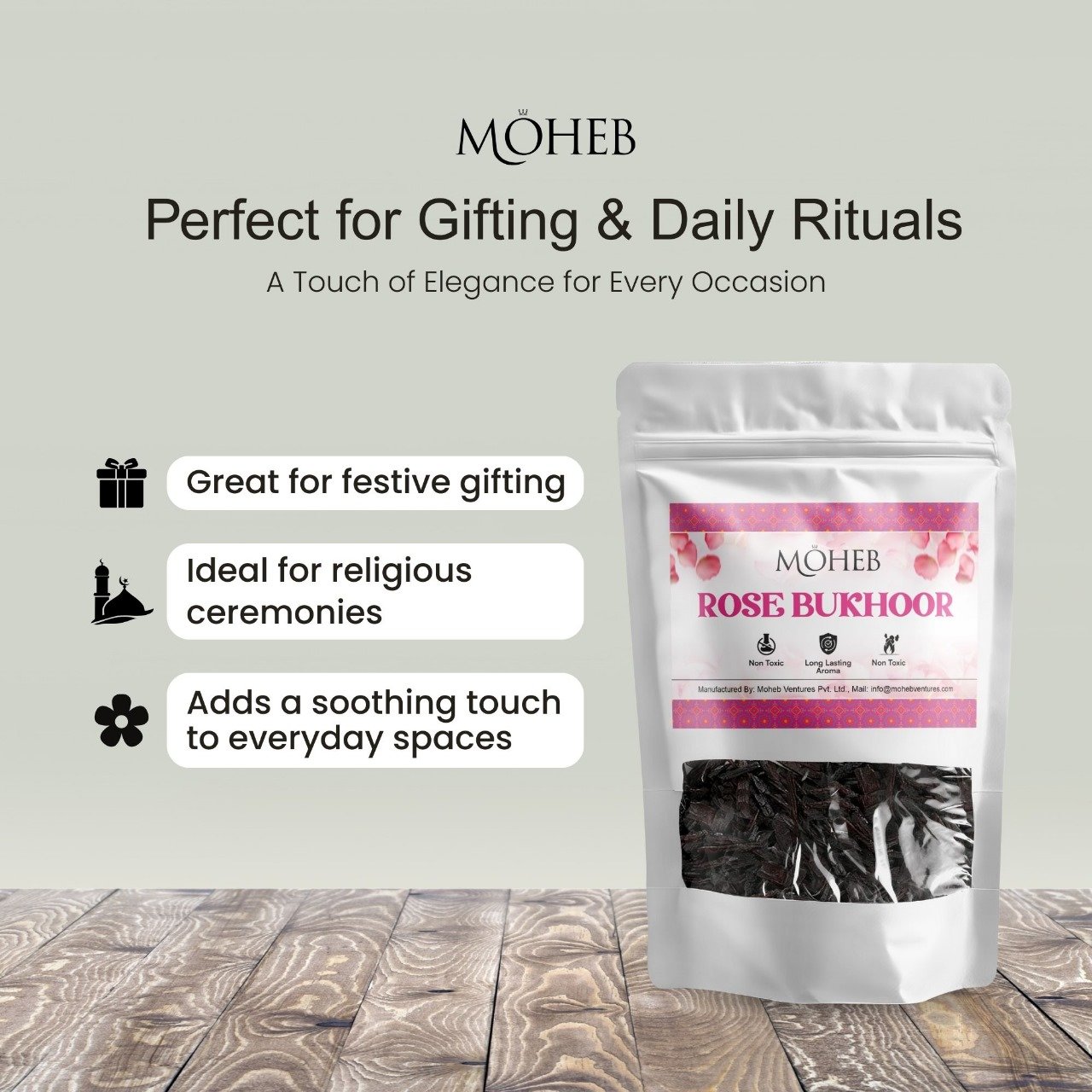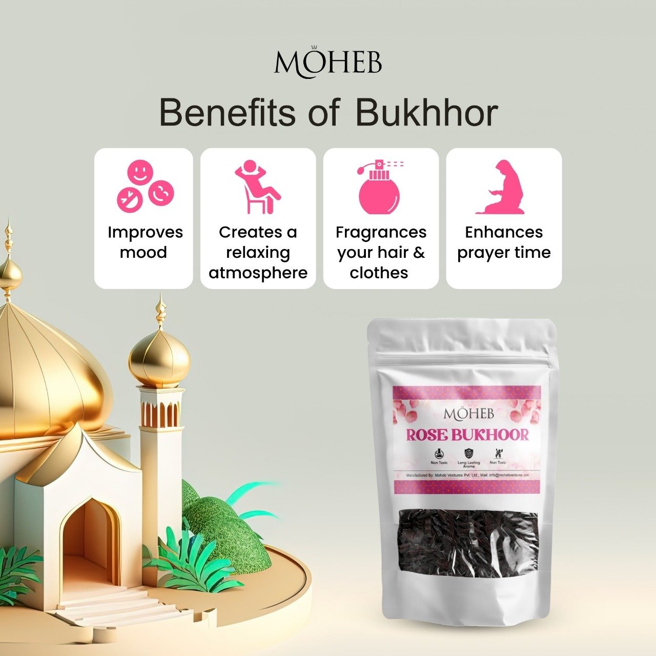 Experience the timeless elegance of fresh roses with Moheb Rose Powder Bukhoor. Crafted from premium aromatic ingredients, this finely blended bukhoor releases a soft, romantic, and long-lasting floral fragrance when gently heated. Perfect for daily use, prayer time, and special occasions, it fills your space with warmth, freshness, and Arabian luxury. Ideal for use on charcoal or electric burners.